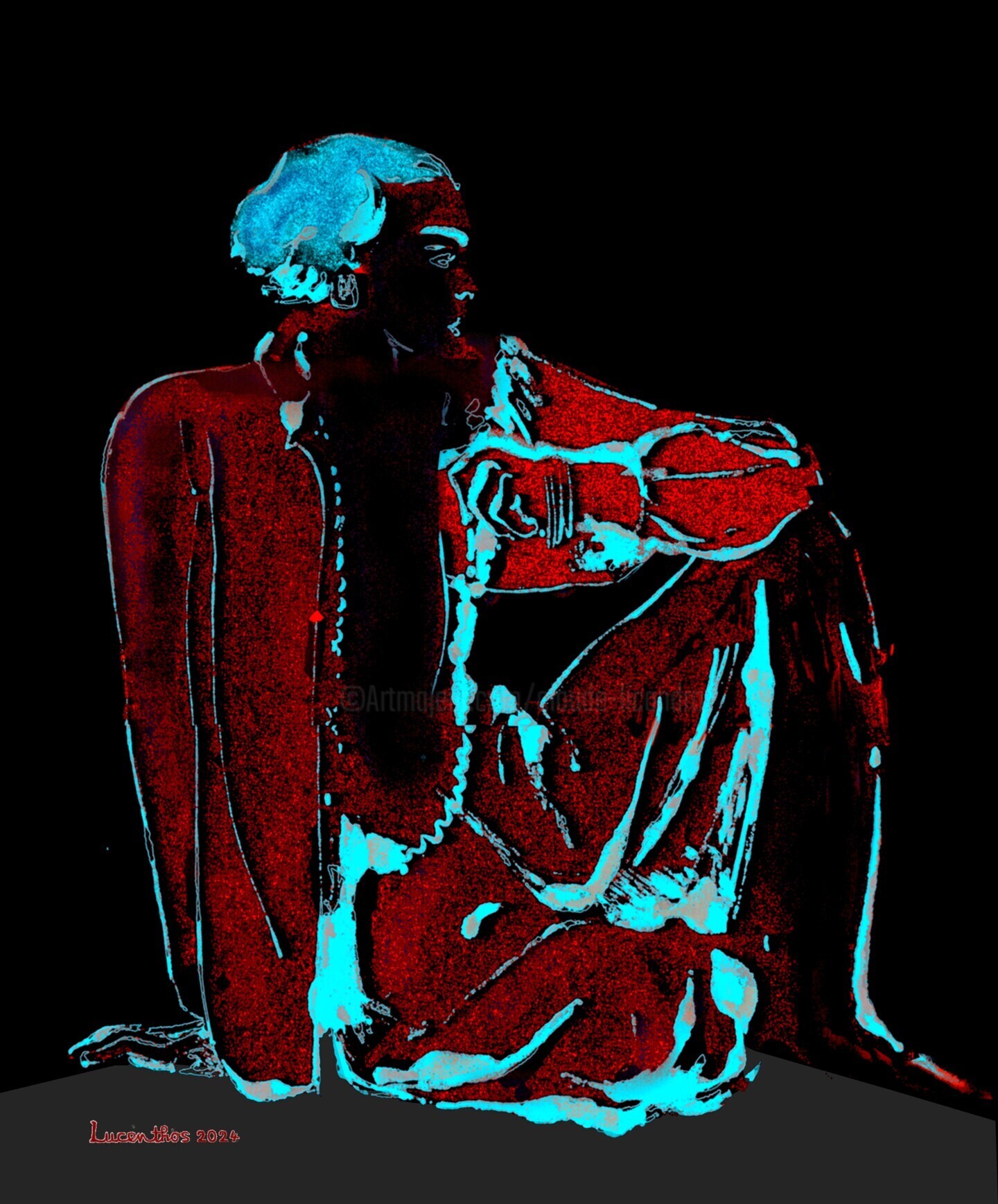 Ce prénom est celui d’un modèle de mode…tout un jeu de mots ! L’intérêt ici, conformément au thème de la série, est le jeu d’encre, traits et taches mêlés d’une part avec la plume et d’autre part avec le stylet numérique et les autres outils de cet ordre. Les variations sont nombreuses et se mettent en valeur les unes les autres.