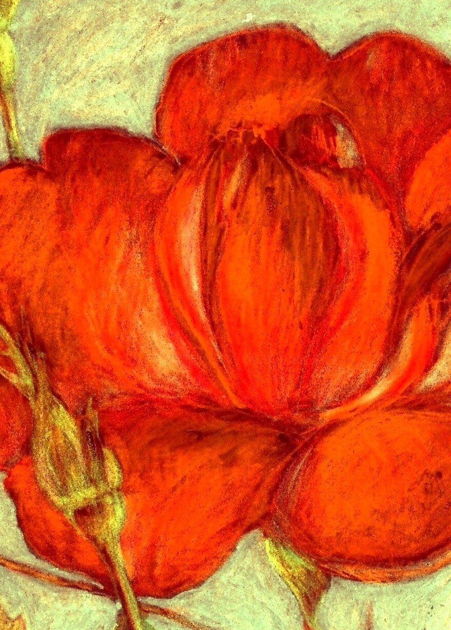 D'abord exécuté aux crayons de couleur, ce dessin a été retravaillé à l'ordinateur pour obtenir d'autres effets. La lumière enveloppant les roses leur donne un aspect irréel ce qui fait que ce n'est pas une reproduction réaliste d'un motif même si le côté figuratif demeure.