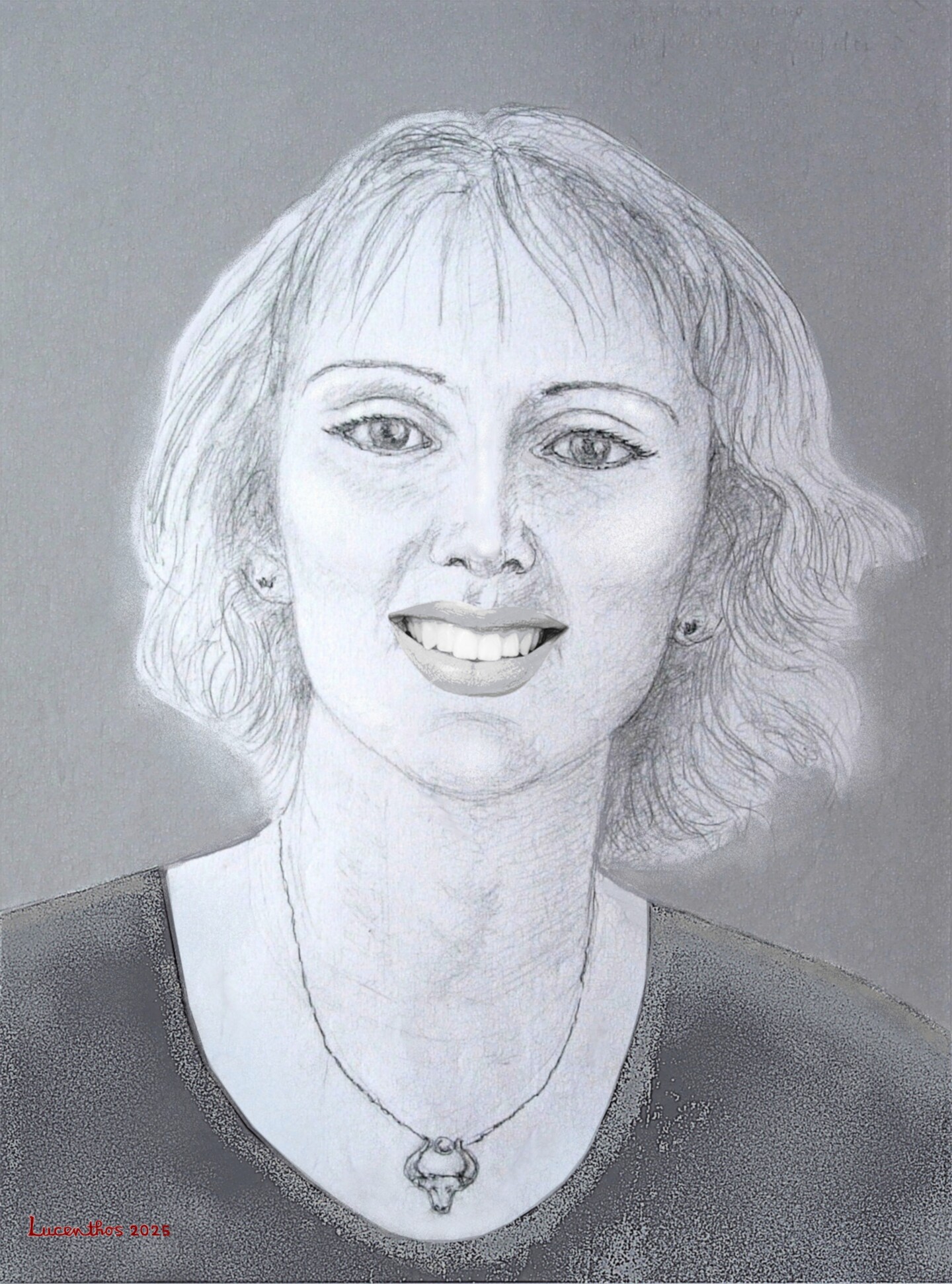 À une certaine époque je m’étais amusé à observer la morphologie des visages par rapport au signe astrologique de naissance. Je n’ai pas approfondi le sujet dans un sens psychologique mais il en est resté certain dessins caractéristiques. Certains spécialistes de psycho astrologie affirment que l’on peut repérer des analogies entre les traits d’un visage et le thème astrologique. Je n’ai pas fait de recherche particulière en ce sens pour vérifier quoi que ce soit mais je retiens la satisfaction qu’il y a à faire un portrait avec quelques présupposés symboliques, ne serait-ce que par jeu. Les spécialistes de la question affirment que les personnes marquées par le signe de Vénus caractéristique du signe du Taureau et de la Balance ont un visage qui reflète l’harmonie vénusienne... C’était le cas du modèle présenté ici et dont le dessin au graphite a été réinterprété en numérique.